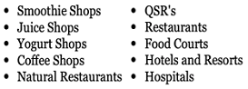 Juice Shops are becoming more and more popular and are growing in many locations throughout America. You will see them in strip malls, colleges and universities, food courts, hospitals, hotels, resorts, airports and many other food service formats.